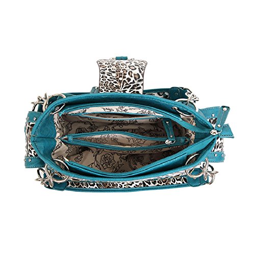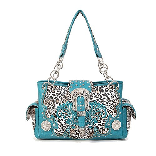 Cowgirl Trendy Snow Leopard Print Concealed Carry Purse with Western Bling Buckle