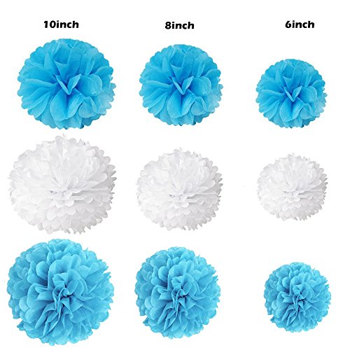 Escoolr Tissue Paper Pom Poms, Blue White Hanging Paper Lanter Ball Paper Flower Balls For Birthday Wedding Party Baby Shower Decorations (Style 2)