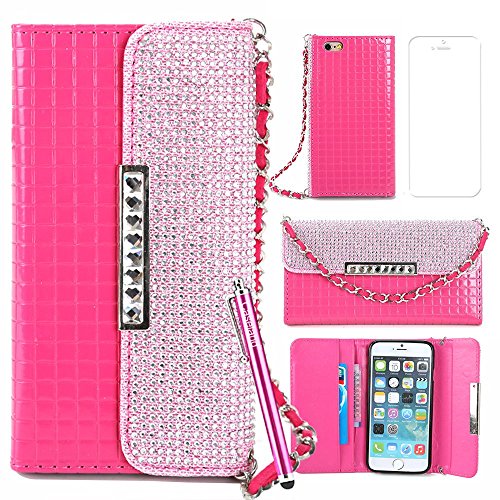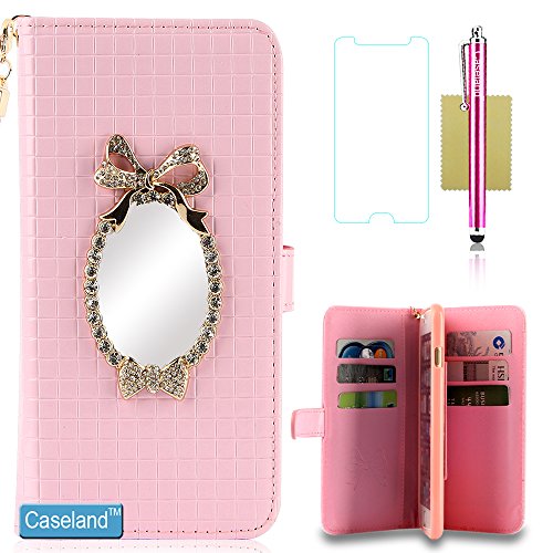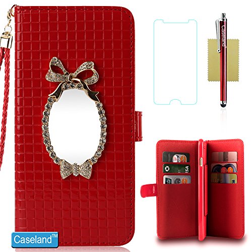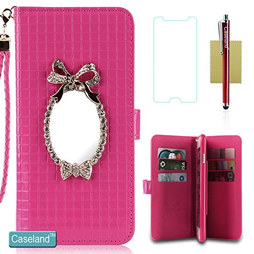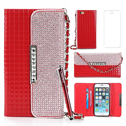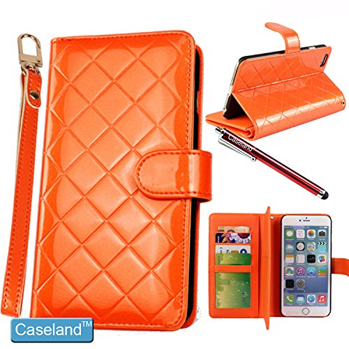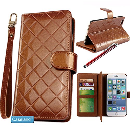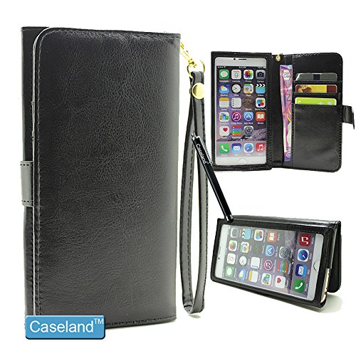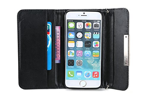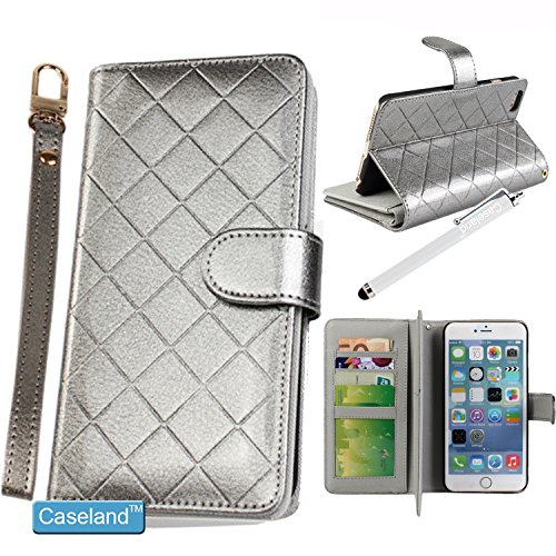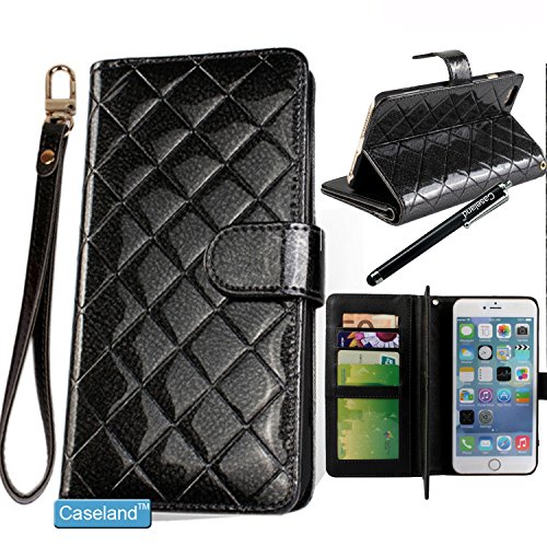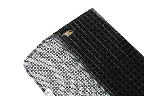 Iphone 6 Plus Case,Iphone 6 Plus Wallet Case,By Caseland Grid Pattern Bling Button Wallet Case For Iphone 6 Plus 5.5 Inch Case With Sling black