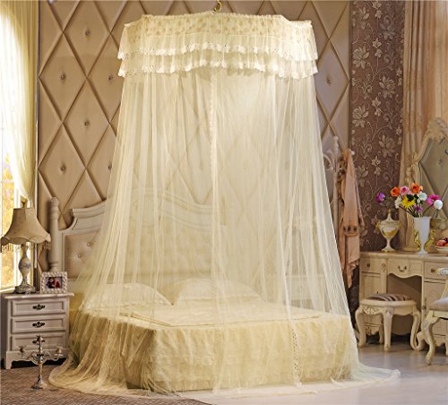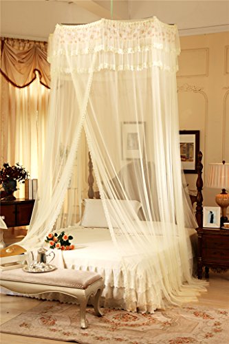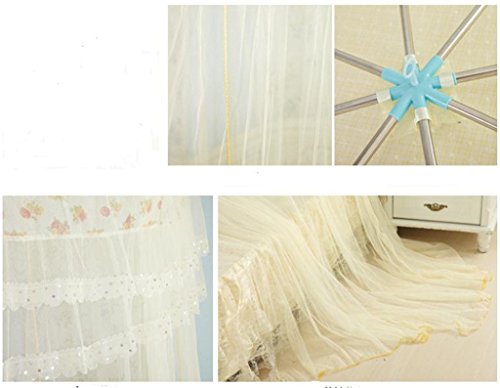 Double Lace Ruffle Princess Bed Net Canopy Fit Crib Twin Full Queen Beige (Beige)