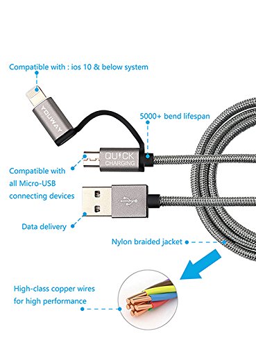 YOUWAY 36W Dual Quick Charge 3.0 Car Charger with 3ft Nylon Braided Cord for Galaxy S7/Edge/Plus, and Smart IC for iPhone 7/6s/Plus, iPad Pro/Air 2/mini, LG, Sony, HTC and More (Rose Gold)