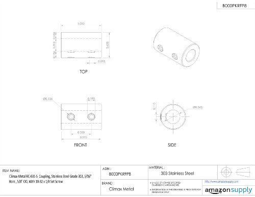 Climax Metal RC-031-S Coupling, Stainless Steel Grade 303, 5/16" Bore , 5/8" OD, With 10-32 x 1/8 Set Screw