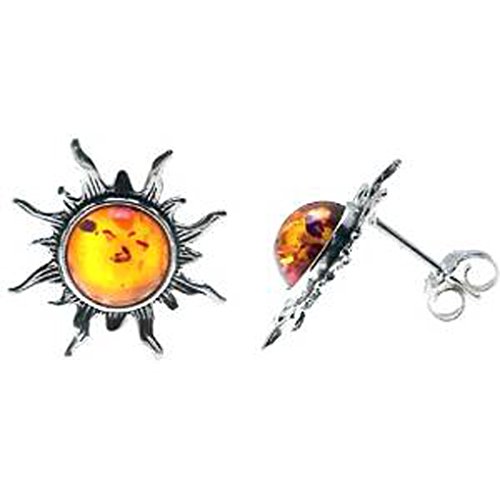 원본상품명: バルト海産の蜂蜜色の琥珀とスタ?リングシルバ?を組み合わせた炎を上げる太陽 スタッド?イヤリング