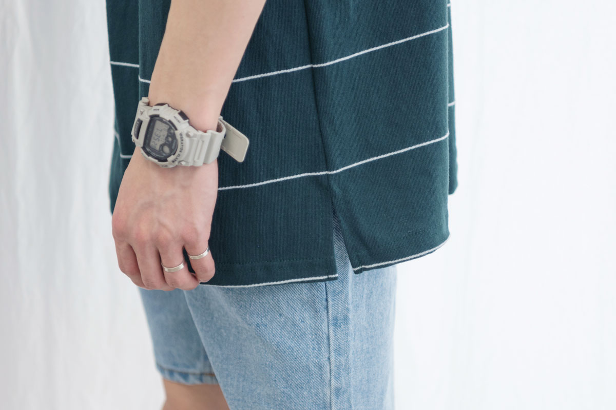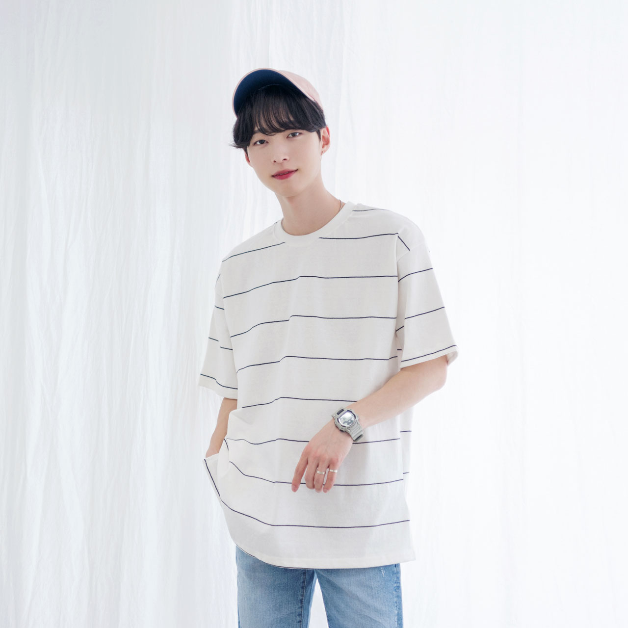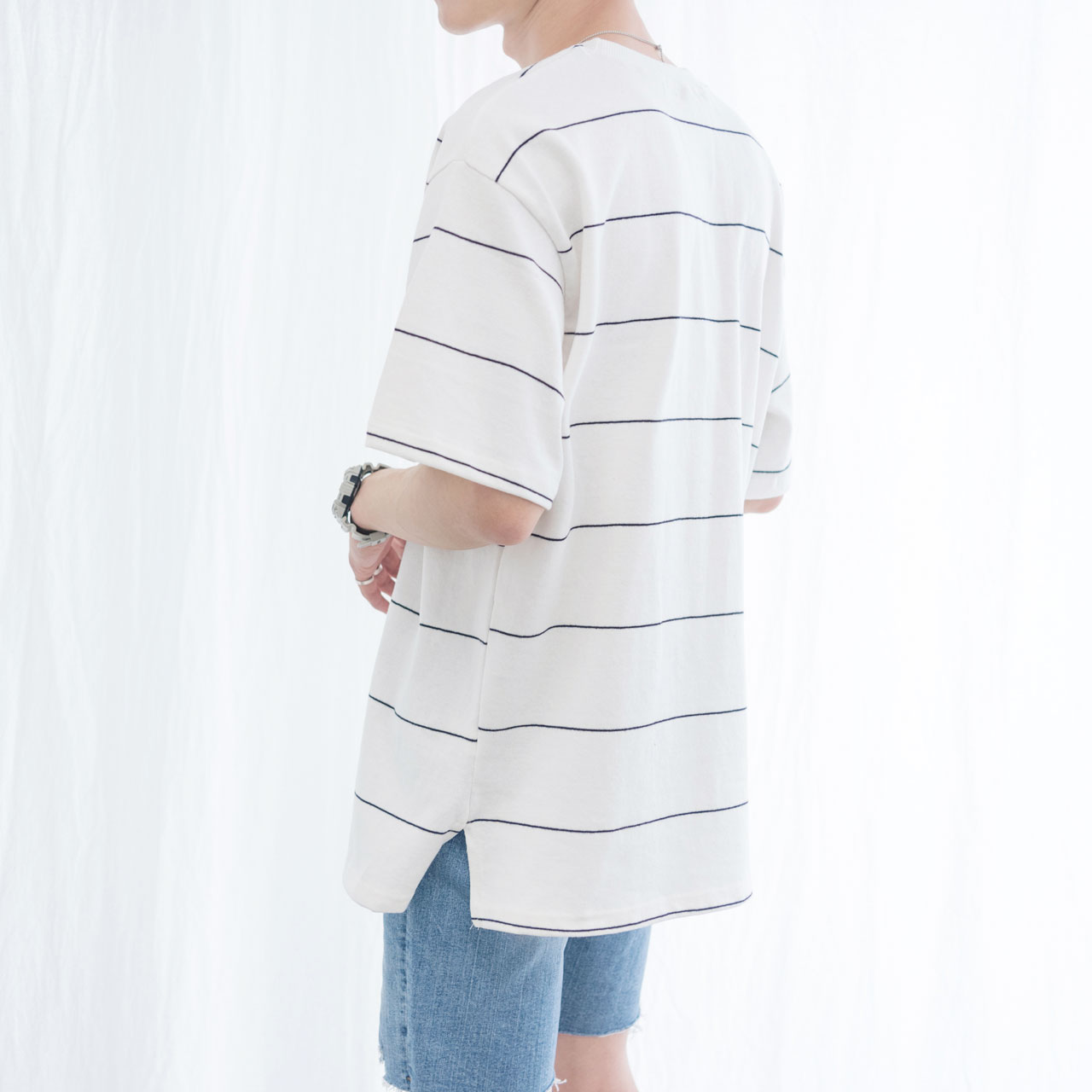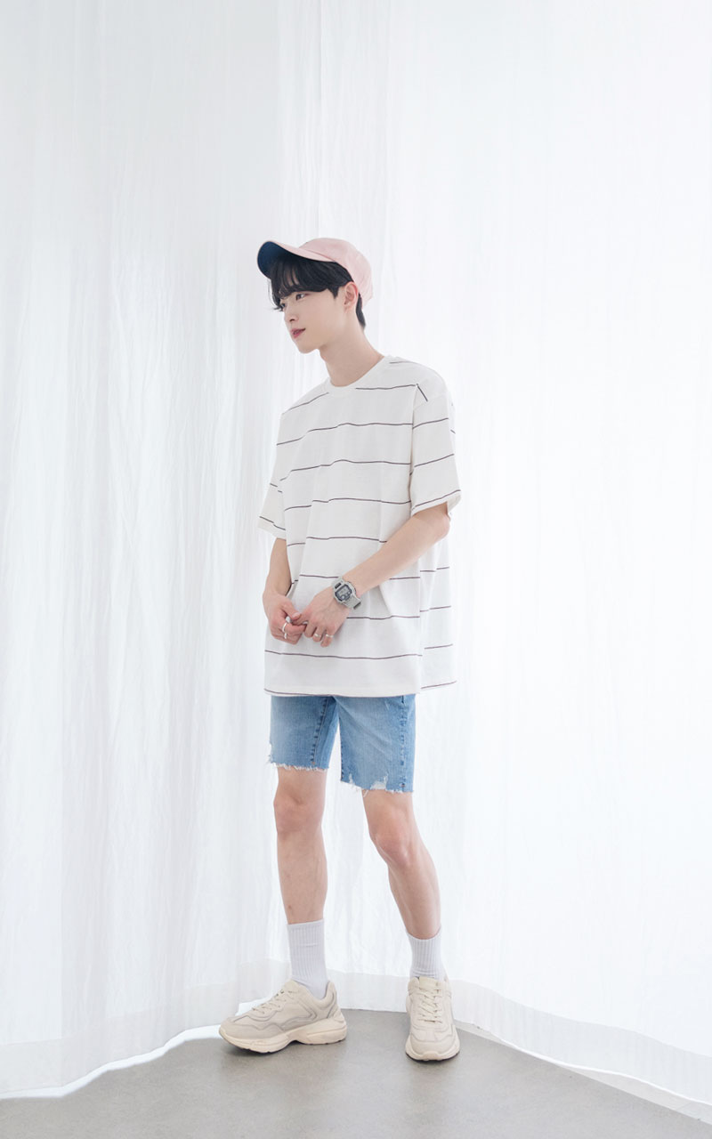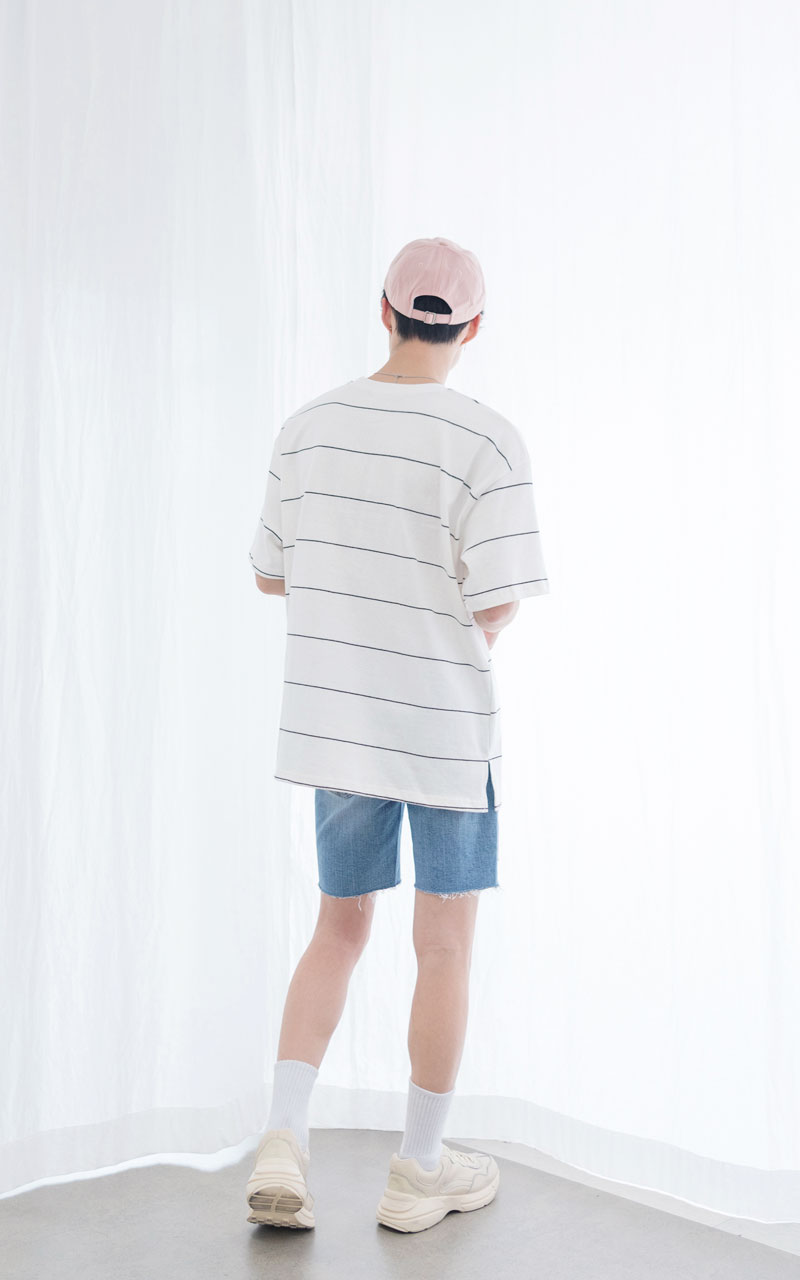 탄탄한 워싱 공정을 거쳐 착용 및 세탁으로 인한 변형을 방지한 스트라이프 티셔츠입니다.