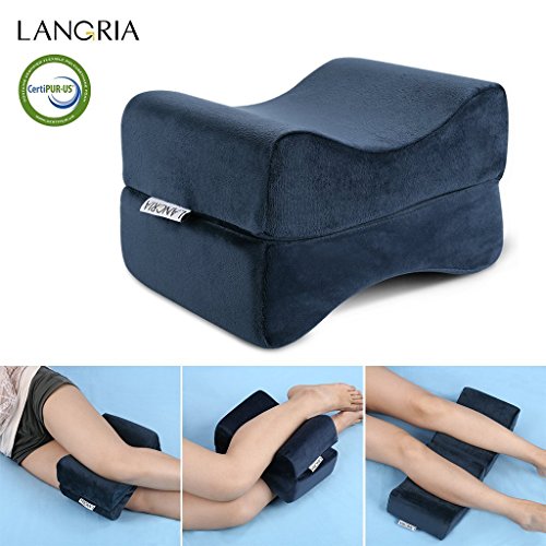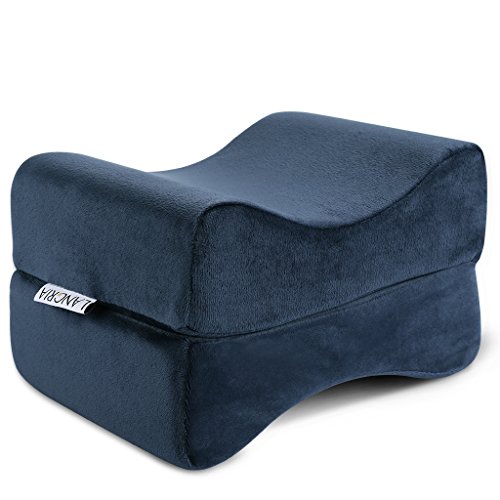 LANGRIA Knee Pillow Memory Foam Leg Pillows for Leg, Back, Hip Pain Relief, Foldable and Antibacterial Design with Removable Cover, CertiPUR-US Certified, (9.8 x 5.9 x 7.0 inches) Navy Blue