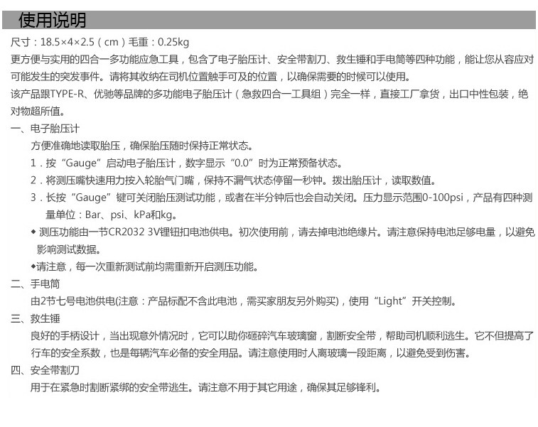 即是胎压表 又是救生锤 多功能