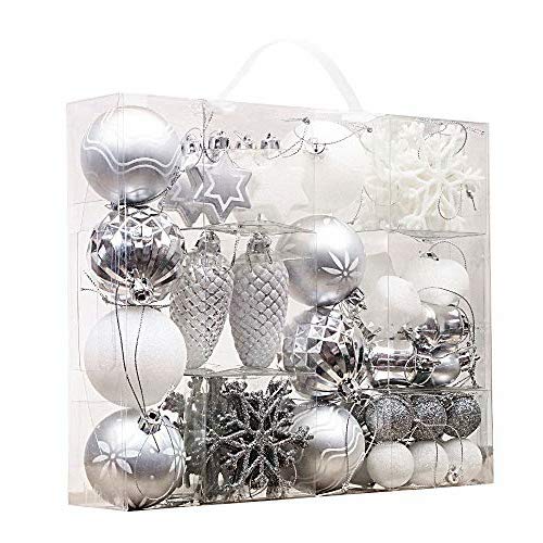 シックなデザインと繊細で芸術的なハンドクラフトの技術でできたオーナメントボールは、お客様に、オリジナルが目を引く楽しいクリスマス空間を作り出します。 サイズ36個セット 10種類大集合!!お買い得!これ一つでツリーの飾り付けができるお手軽で豪華なオーナメントセットです。 独特、最新型なデザインでお客様の装飾に、より多くの可能性を生み出します。北欧風のボールオーナメントでお手持ちのツリーにキュートと華麗に大変身!高貴なメタリックゴールドを基調にしたボールは華麗なイメージのツリーがよく似合います。 色を引き立てる銀色は鮮やかな色と併せて使うと雅びやかになりますので、当店での銀&ピンクシリーズと赤&緑&白&銀シリーズのオーナメントを勧めます。 ツリーに吊るために糸がついております。とても便利につるすことができる、子供でも使えます。包装も頑丈なデザインを工夫しましたので、ご安心ください。過程~楽しい:飾り付けはアレンジ次第でバリエーションは無限大!セット内容が豊富なので、準備は少し大変かも知れませんが、主役の方の喜ぶ顔を想いながら、準備する過程も楽しんで頂けたら嬉しいです