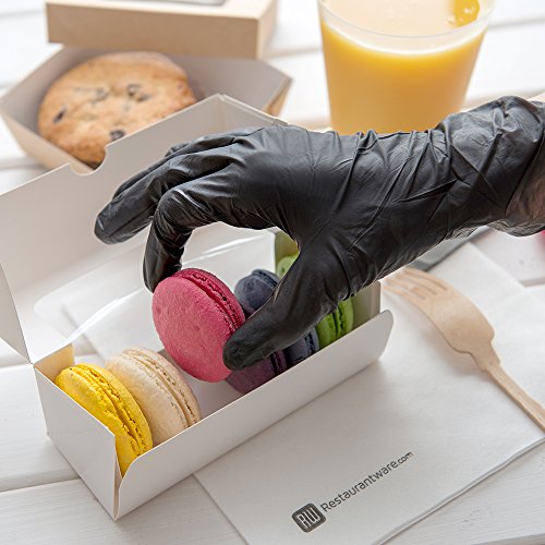 FLEXIBLE & STYLISH DESIGN: Restaurantware's durable nitrile gloves aren't only designed to be tough and resist tears - they're also easy to put on and take off as needed. The sleek black gloves add a touch of class in upscale restaurants or during catering events.