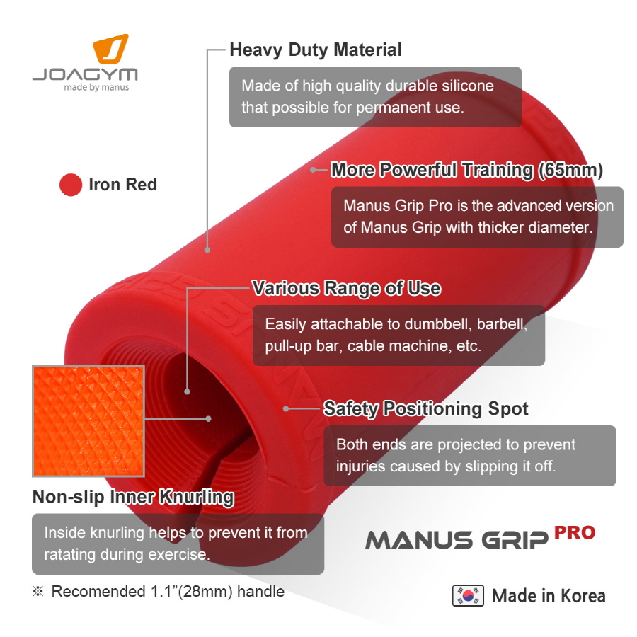 マヌスグリップは最も基本的なレベルの ファットグリップ(Fat Grip)アダプターです。ファットグリップ(Fat Grip)運動に 初めて入門した方におすすめです。今後は上位レベルのマヌスグリッププロやオルビーグリップに移動してください。