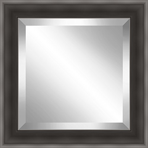 Ashton Art & Décor Brushed Silver Grey Framed Beveled Plate Glass Mirror, 24 by 24-Inch