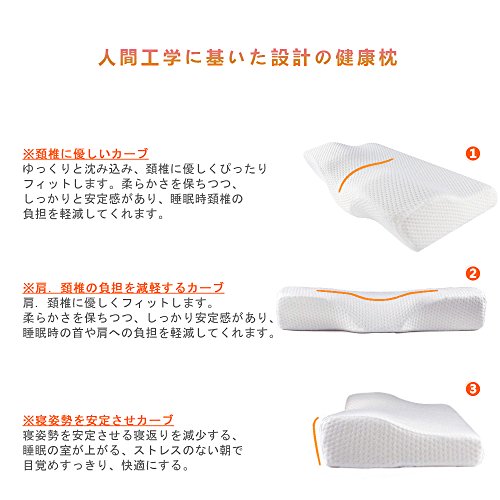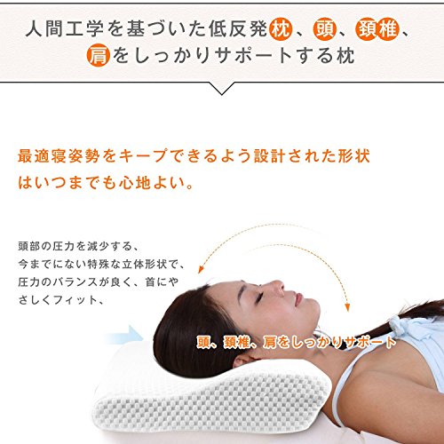Based on the [ergonomic], low-repulsion not applied the burden on the body, head, neck, firmly support the shoulder, is comfortable good pillow that is designed to be able to keep the best posture. Open the airway by keeping the ideal curve of the neck, breathing and sleep to relax easier, because it is less likely to interfere with the blood flow to reduce the burden on the shoulder, you can soundly lightly sleep without it. It enhances the [fit] at the time of his back is form of concave three-dimensional. Also to allow smooth movement in the lateral sleeping The point is to have a thickness on both sides. Your best position is the short list form. In order to wrap around the neck and shoulders when're inclined to before sleeping in landscape or supine. Calculated exhausted design is light. [Comfortable Wave Line: There is a great Kana wave line. This enables comfortable rolling over. It enables impossible without rolling over to the left and right. Neck and this line is there is no being squeezed, you may also be the cause of shoulder stiffness and stiff neck. [Also sticking to the pillow cover]: natural with the softness, such as silk, gentle touch of cotton cover, to absorb the firm sweat, is excellent ventilation, it feels good. The basic "sleep-friendliness" Good for: Since it has adopted a high-density low-rebound urethane foam material of the new development to deform the shape freely in accordance with the shape of the head, cervical spine, shoulder part of everyone, to anyone But it fits. By the freedom of flexibility and moderate resilience, which is a feature of the urethane foam, we have rather than sleep in accordance with the pillow, do you deformed pillow to fit in our body. More efficiently distribute the body pressure by that, relieve the burden on the head, cervical spine, shoulder.