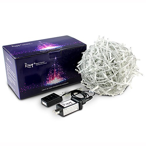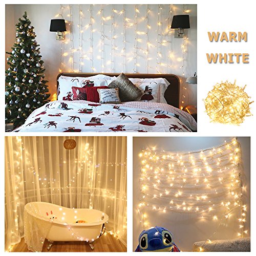 RPGT 300 LEDs Transparent White Clear Wire IP44 Waterproof Fairy String Tree Twinkle Lights 8 modes Memory Function for Christmas Party, Outdoor, Garden, Wedding, Home Decoration (Warm White)