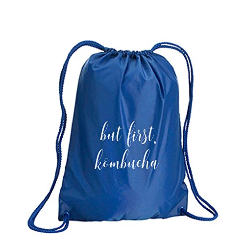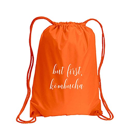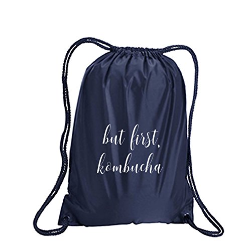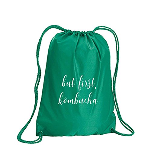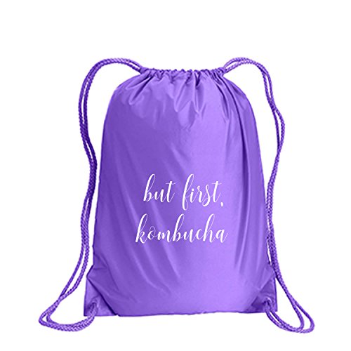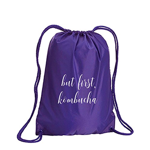 Product Description This durable and stylish nylon tote features "but first, kombucha" on a cinch pack tote with white ink. Bag comes in small and large sizes and is made of a durable 210 Denier nylon and has color-matched draw cords. Printed in the USA on an imported bag. 0