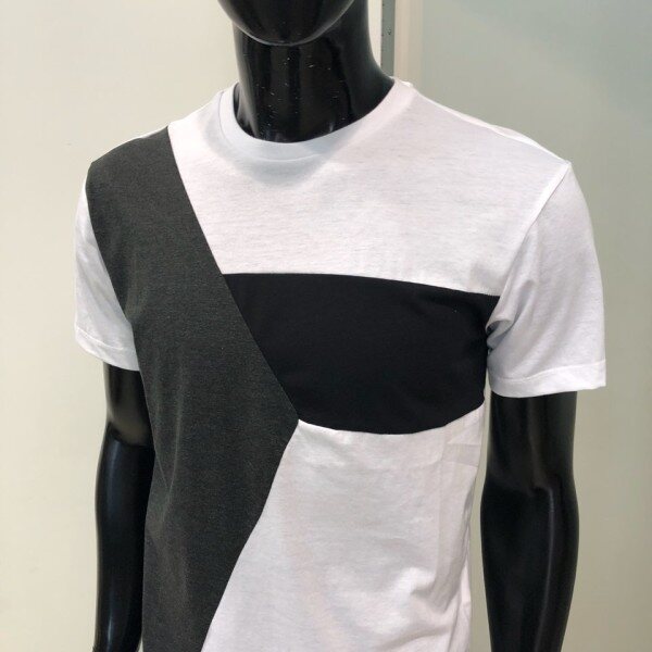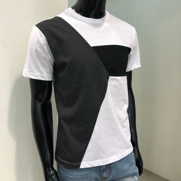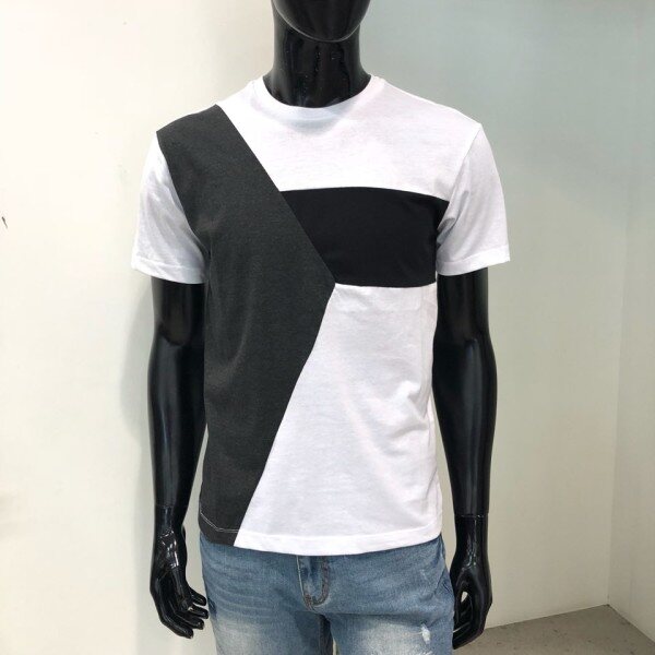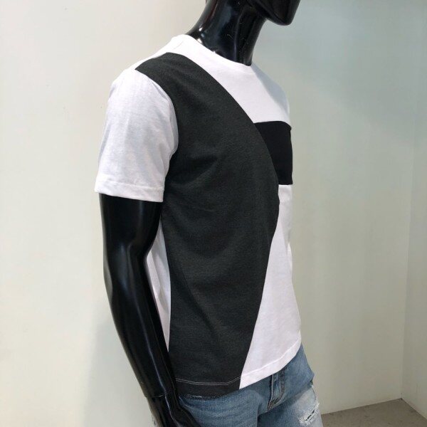 18 S/S 여름 신상.남자 3도 블록 티셔츠 입니다. 유니크한ㅈ사선 블록을 모노톤으로 차분하게 디자인된 라운드넥 티셔츠 입니다.