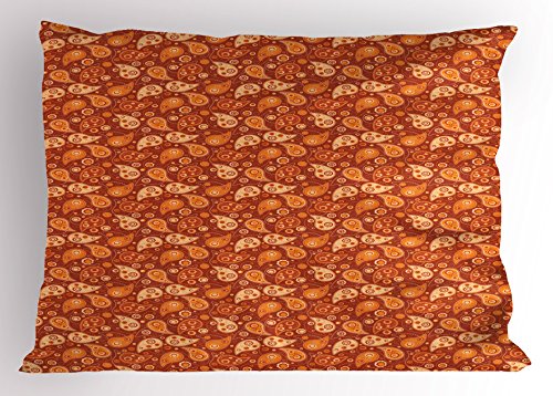 (Ambesonne)/Bedding Bath/Bedding/DIRECT FROM USA/Orange Pillow Sham by Ambesonne, Retro Style Pattern with Paisley and Flowers Stylized Ornate L...