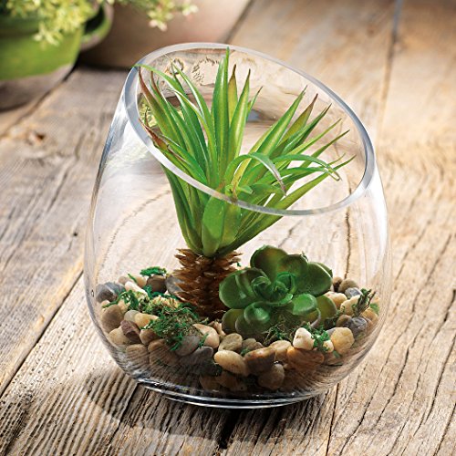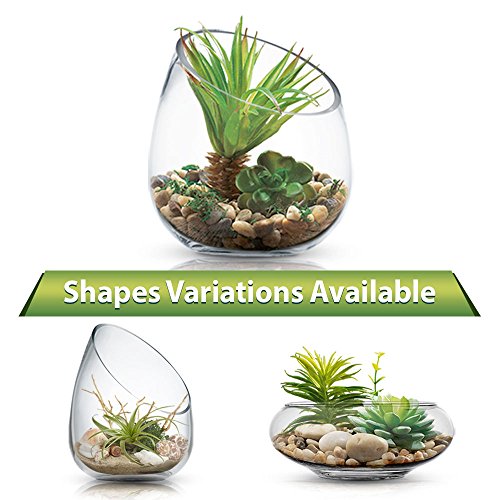 Clear Glass Terrarium Vase, Planter Bowl with Succulents and Decorative Stones - Decorative Centerpiece (Slant Cut, Small)