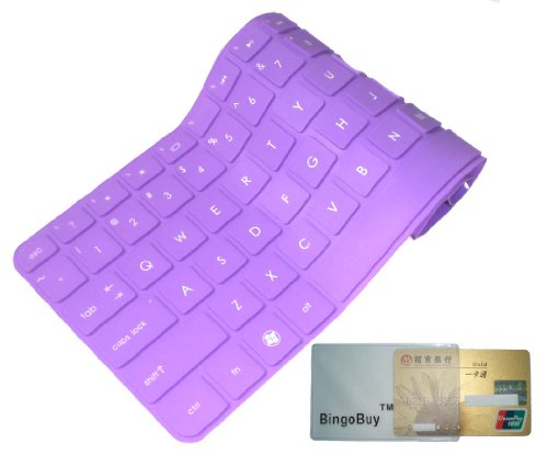 -. Feature : Please DO check "Product Description" part to avoid buying wrongly!!! / Pefectly molded for each key, high quality silicone, lower the noise of typing / No glue, static cling, flexible, washable, easy to fix & remove / Waterproof and dustproof, protect your keyboard against everyday spills (coffee/beer/milk), dust (crumbs/powder), pet's pees or the other incidents / Package includes: 1pcs purple silicone cover + 1pcs BingoBuyTM card case