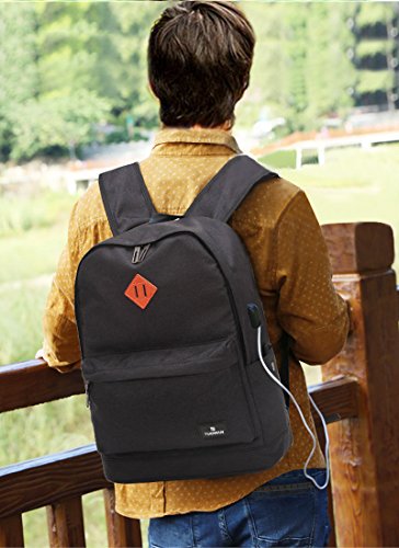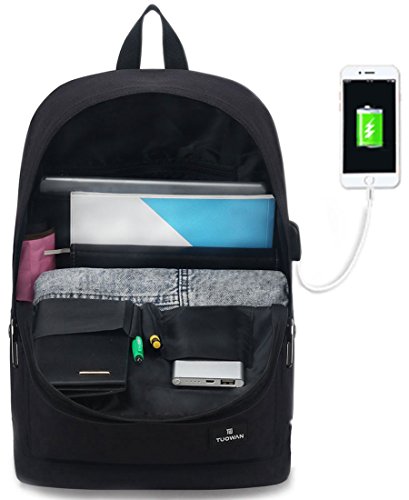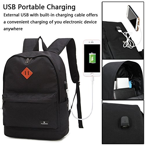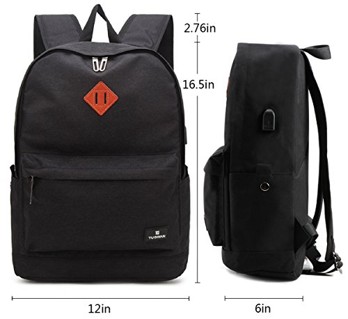 Taiwan canvas school college backpack 15.6 inch laptop travel bag with USB charging port1.This canvas backpack is a fashion, durable, lightweight, comfortable and multifunctional casual backpack, made of high quality density polyester with excellent stitching technic which makes it more durable and sturdy.2.Lots of pockets inside to keep things organized and handy. Roomy space for carrying 15.6 inch laptop, books, clothes, water bottles, iPad, phone, pen, keys, wallet and other everyday essentials.3.With a USB port and a removable USB cable, you can charge your electronic device with your own portable charger conveniently.4.Padded back panel and adjustable thicken breathable shoulder straps for ultra comfort and stability, suitable for long trips.5.Great daypack for school, college, working, outdoor, traveling, shopping, cycling and everyday use. Book bags for men women.6.Package included: 1 x backpack, 1 x USB cable buyer please note 1) color: Due to the brightness difference among monitors, there will be a slight color difference. 2) maintain: Taking off the USB cable when you wash the bag, avoid rusting. 3)warranty: 60 days warranty. About the brand: 1.TUOWAN is a registered trademark and qiheng is the only authorized seller of Taiwan branded products. 2.TUOWAN devotes to offer various exciting bags around the world to delight you 3.Product perfection is the ultimate goal of Taiwan, your opinion is our improvement, please feel free to drop down message for any problems.Feature