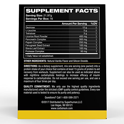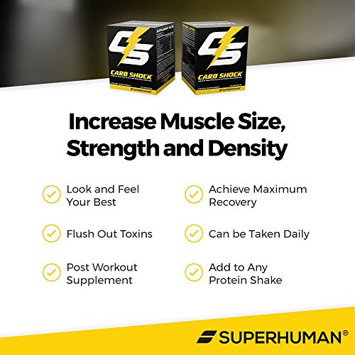 -. Binding : Health and Beauty -. Brand : Superhuman -. EAN : 0632181494660 -. Feature : ULTIMATE POST WORKOUT RECOVERY: Contains the highest-octane fuel and the best nutrients to flood your muscles maximizing your results in the gym. / GROW MUSCLE: Increases protein synthesis allowing you to absorb the "building blocks" your muscles crave to increase size, density, and strength. / GET STRONGER: Create a massive - yet controlled - insulin spike without the unneeded carbs to stimulate a maximum anabolic state. / RECOVER FASTER: Assists your muscles at the cellular level to continually flush out the cellular debris and toxins setting the stage for maximum recovery. / TRAIN LIKE A BEAST: Don't waste another workout without fueling your body with the ultimate post-workout formula. -. IsAdultProduct : 0 -. Label : Superhuman -. Manufacturer : Superhuman -. MPN : SH-Carb-Shock -. PackageQuantity : 1 -. PartNumber : SH-Carb-Shock -. ProductGroup : Health and Beauty -. ProductTypeName : HEALTH_PERSONAL_CARE -. Publisher : Superhuman -. Studio : Superhuman -. Title : Ultimate Post Workout Recovery Supplement for Men & Women - Carb Shock - Gain Muscle Size, Density, and Strength - Recover Faster - Just Add To Your Protein Shake (16 Packets) -. UPC : 632181494660