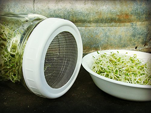 SPROUTING LID FOR MASON JARS 'THE ORIGINAL SPEED STRAINER LID'® (SET OF 8 WIDE MOUTH LIDS) FOR SPROUTS, SPROUTING, SIFTING, & STRAINING