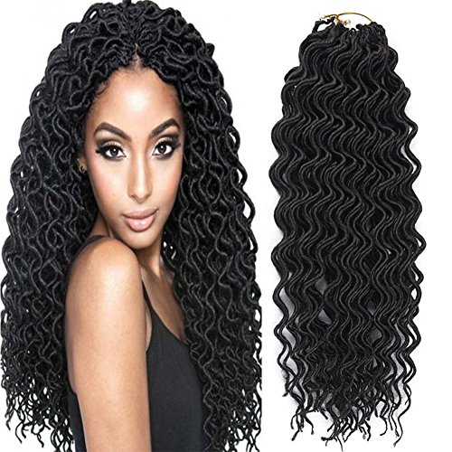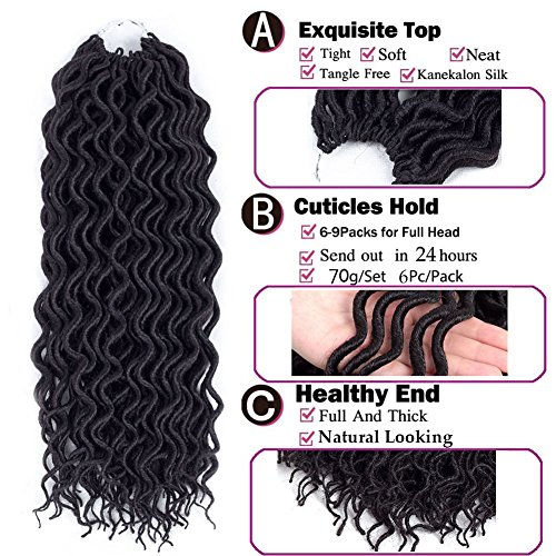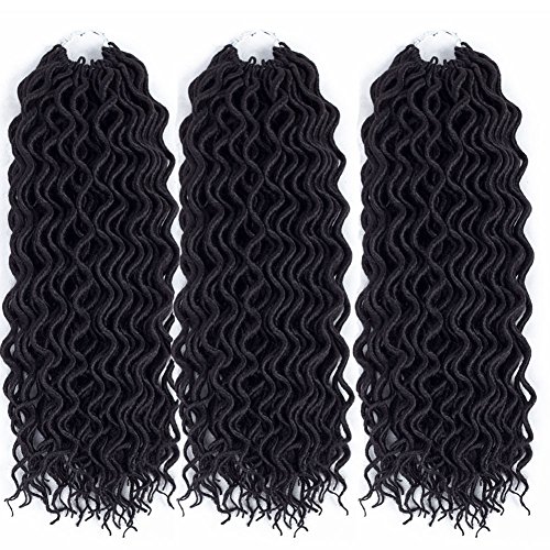 6 Packs Curly Faux Locs Crochet Hair Deep Wavy Crochet Braids Synthetic Hair Crochet Extensions Dreadlocks Goddess Locs Braid Hair(20 Inch 1B)