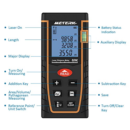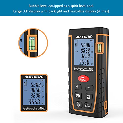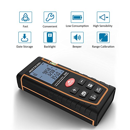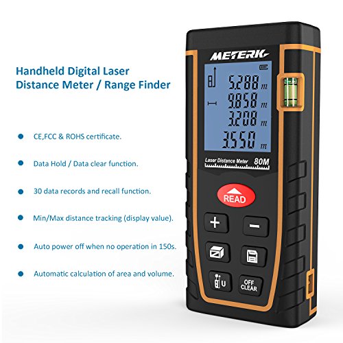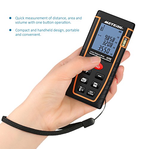 Meterk Handheld Digital Laser Distance Meter Portable Area Volume Measurement Tool Range Finder High-precision Rangefinder M/In/Ft Data Storage Memory Function LCD Display Backlight Level Bubble (80m)
