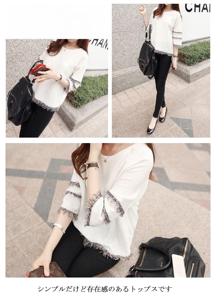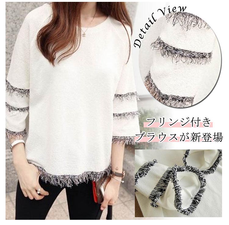 | フリンジ付きブラウスが新登場暖かい時期にもぴったりな七分袖がポイントシンプルだけど存在感のあるトップスです | |