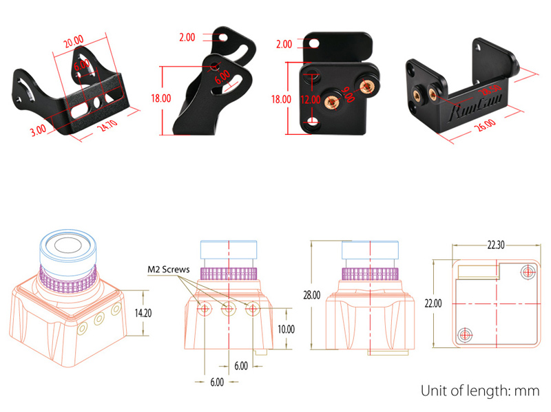 28 * 22.3 * 22mm, ultra small size, easy to install; weight about 13.5g, compatible with small frame FPV racing drone.