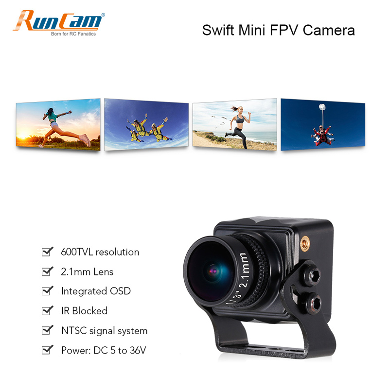 RunCam Swift Mini 600TVL FPV Camera 2.1mm Lens OSD DC 5-36V FOV 165 Degree NTSC IR Blocked with Mount for Multicopter Racing Drone Quadcopter Aerial Photography.