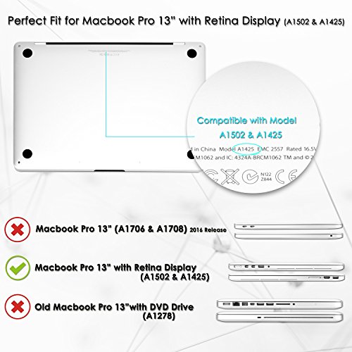 -. Binding : Office Product -. Brand : TOP CASE -. Label : TOP CASE -. Manufacturer : TOP CASE -. PackageQuantity : 1 -. ProductGroup : Office Product -. ProductTypeName : OFFICE_PRODUCTS -. Publisher : TOP CASE -. Studio : TOP CASE -. Title : TOP CASE - 2 in 1 Bundle Deal Rubberized Hard Case + Keyboard Cover for Macbook Pro 13" with Retina Display A1425/A1502 (Release 2012-2015)