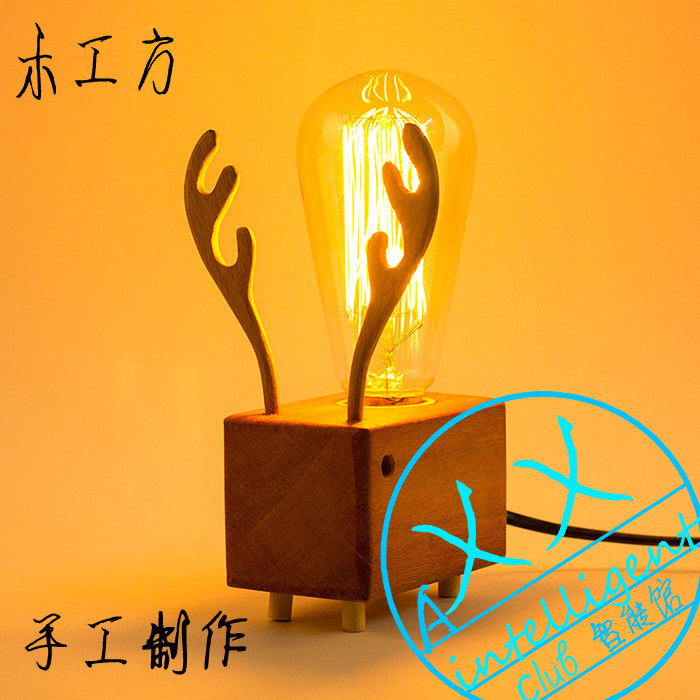 手工实木钨丝灯装饰台灯动物小鹿创意卡通礼品情人节礼物送女生日