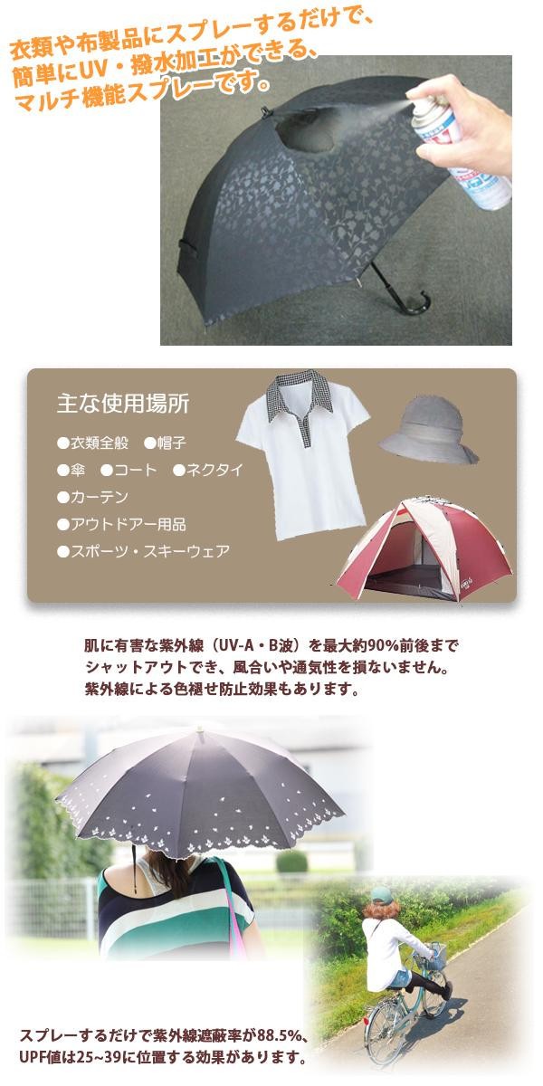 | 紫外線対策+撥水加工が同時にできるスプレー!! |