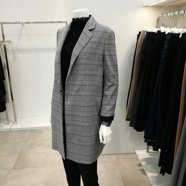 하프 테일러드 자켓이며 세미케쥬얼 정장으로 코디하기 쉬우며 편하게 입을 수 있다.