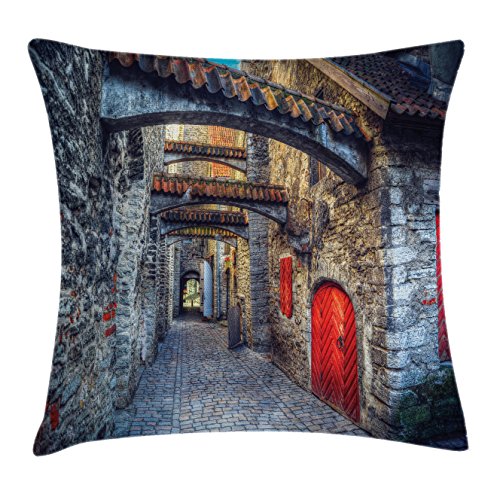 (Ambesonne)/Bedding Bath/Bedding/DIRECT FROM USA/Medieval Throw Pillow Cushion Cover by Ambesonne, Old Stone Street with Stone Passage Estonia M...