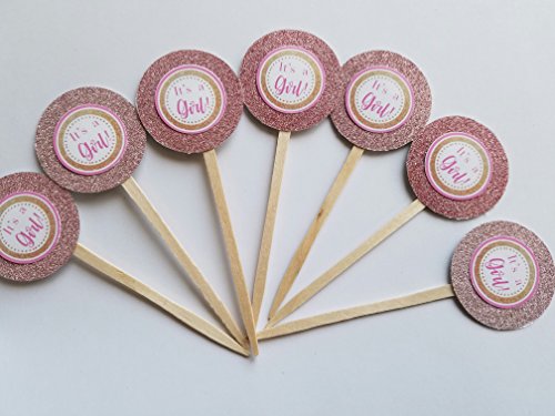 8 It's a Girl Baby Shower Cupcake Toppers Party Favor Goody Gender Reveal Decor
