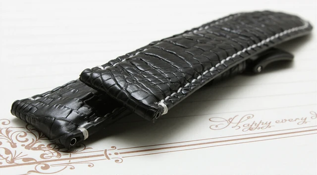 | [해외] 22 미리메터 24 미리메터 새로운 남성 블랙 화이트 스티치 진짜 악어 가죽 시계 밴드 스트랩 팔찌 Dpolyment 버클 |