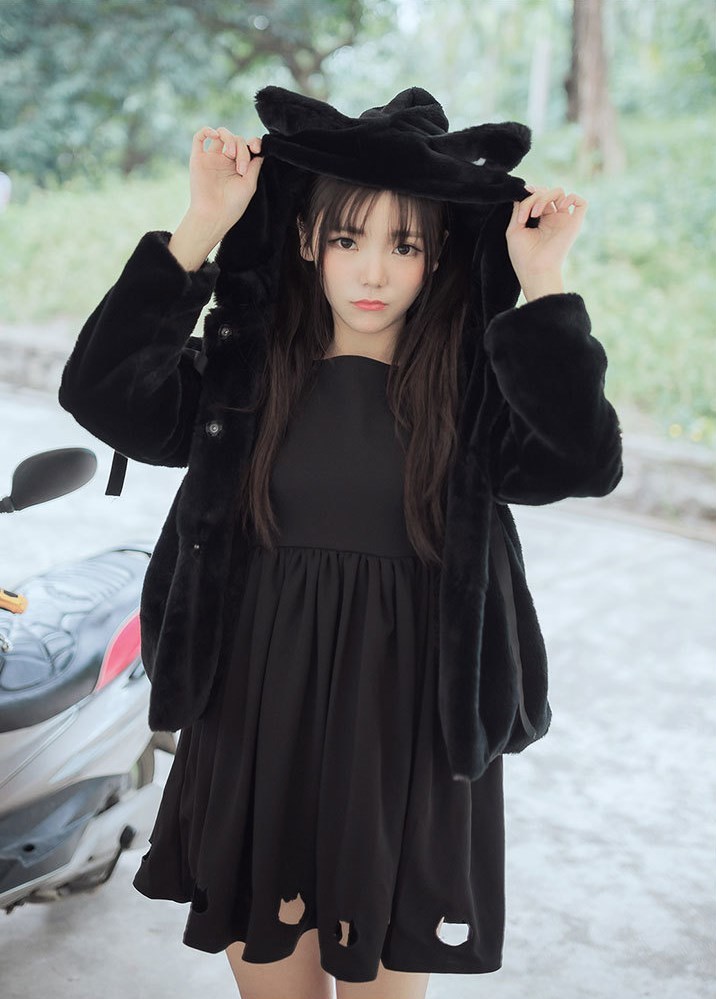 コンパクトな丈感ですっきりと仕上げた♪♪ウォーム感たっぷり、かわいい猫コート♪