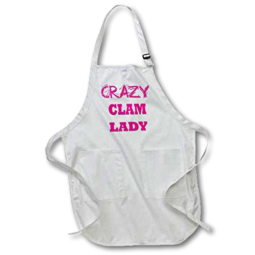 3dRose Crazy Clam Lady - Full Length Apron, 22 by 30-inch, White, With Pockets (apr_174985_1)