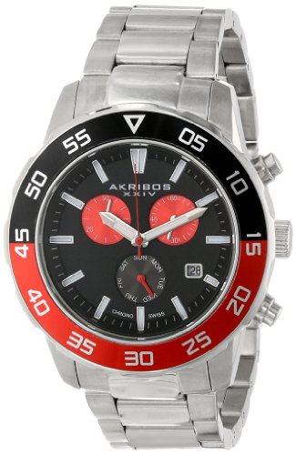 -. Title : Akribos XXIV Men's AK669RD Ultimate Swiss Quartz Chronograph Red Accented Black Dial Stainless Steel Bracelet Watch