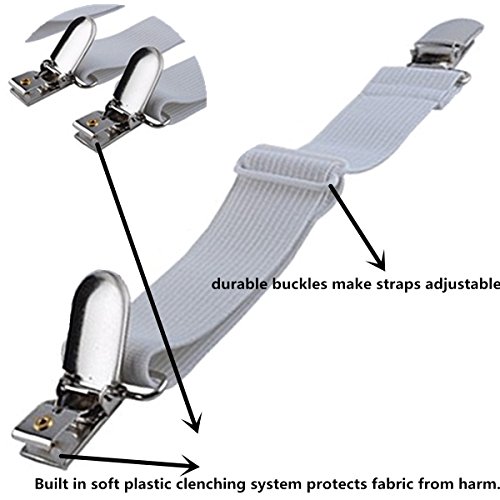 Great for keeping sheets in place to eliminate wrinkling and bunching.using the mattress clips:attach the metal clips to the mattress pad or other bulky item,approximately 7 to 10 inches(17-25cm) from the corners.slip the elastic straps under the mattress,repeating on all four corners.