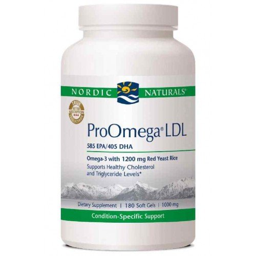 High Concentrate EPA/DHA Formula with Red Yeast Rice and CoQ10 Pharmaceutical Grade† Molecularly Distilled Nordic Naturals ProOmega LDL contains a blend of highly concentrated omega-3 fatty acids, red yeast rice, and CoQ10 to support healthy cholesterol levels.* ProOmega LDL promotes cardiovascular health by supporting the liver's ability to metabolize dietary fat and cholesterol, promoting healthy blood vessel function, and providing antioxidant protection.* †All Nordic Naturals fish oils surpass all pharmaceutical standards for freshness and purity. Every batch is third-party tested, showing no detected levels of heavy metals, dioxins, or PCBs. *These statements have not been evaluated by the Food and Drug Administration. This product is not intended to diagnose, treat, cure, or prevent any disease.Feature