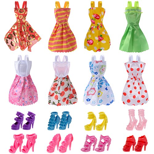 Total 120pcs -10 Pack Doll Clothes Party Gown Outfits +10pcs bags +100pcs Different Doll Accessories Shoes Glasses Necklace Tableware Mirror For Barbie Doll Girl Birthday Gift