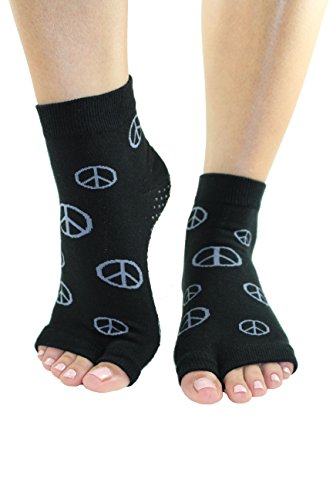-. Binding : Apparel -. Brand : Toezies -. Color : Black & Grey -. Department : womens -. Feature : Perfect for Pilates, Yoga or Lounging Around / Form-fitting Tabi's features a open split toe design and a non slip sole for increased balance, control and superior grip. / Hygienic alternative to bare feet / Made of 65% cotton 25% Polyester 8% Nylon 2% Spandex / Machine washable. Dry Low Heat. -. IsAdultProduct : 0 -. ProductGroup : Apparel -. ProductTypeName : SOCKSHOSIERY -. Title : Toezies Peace Sign Tabi