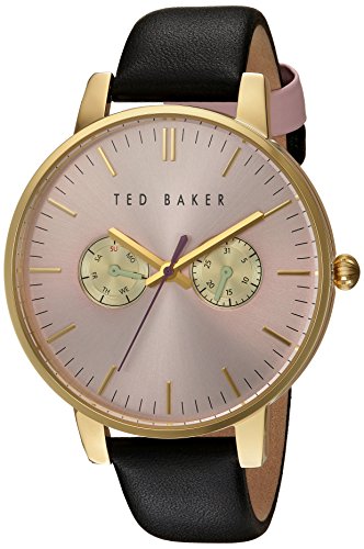 Give yourself that sport-luxe look with this Ted Baker™ timepiece right by your side! Stainless steel case. Leather strap with deployant buckle closure. Round face. Three-hand analog display with quartz movement. Dial features gold-tone hands and hour markers, two sub-dials, minute track, and Ted Baker detailing. Water resistant 3 ATM. Imported. Measurements: Case Height: 40 mm Case Width: 40 mm Case Depth: 9 1⁄5 mm Band Width: 5⁄9 in Band Circumference/Length: 8 in Weight: 1.8 oz This product may have a manufacturer's warranty. Please visit the manufacturer's website or contact us at warranty@support.zappos.com for full manufacturer warranty details.Feature