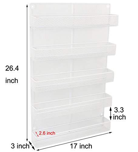 Studio : ShiYuan Publisher : ShiYuan Product Description More Detail about ESYLIFE 5 Tier Spice Rack You Want to Know Material Q: What¡?s punching net? A: Punching net is a kind of iron net, made of premium hole board, more durable than the common iron net, compare with general iron net, punching net has strong rustproof and waterproof, the solder joints are not easy to fall off, The surface of the fragrance frame made of ordinary iron mesh is not as smooth as punching net. What¡?s more, this wall mounted spice rack is not only beautiful, but also very practical. Q: What else can I storage, except placing spices jars? A: Each tier inner depth is 2.6 inch and each tier spacing is 3.3 inch, you can put some small essential oils, nail polishes, and so on; You can make full use this hole board, the hole can storage your earrings, you can try it. Q: How to clean this spice rack? Can I use detergent or a brush? A: Well, very easy, just wipe with soft cloth in general, not need brush, but if it hard to wipe, a neutral detergent can be used, no strong corrosive cleaners. Q: Hey, dear seller, the spice rack comes without screws, can you re-send me the missing screws? A: Of course yes, it is our duty to help customers resolve any issues, providing more high quality product and the best customer service is our motto. So please do not hesitate to contact us if you have any questions or issues. Material: Premium Punching Net, Hole Board Color: White Installation Method: Wall Mounted Screws: 4 pieces Layers: 5 Tier Package: 1 x ESYLIFE Wall Mount Spice Rack Per Box 0