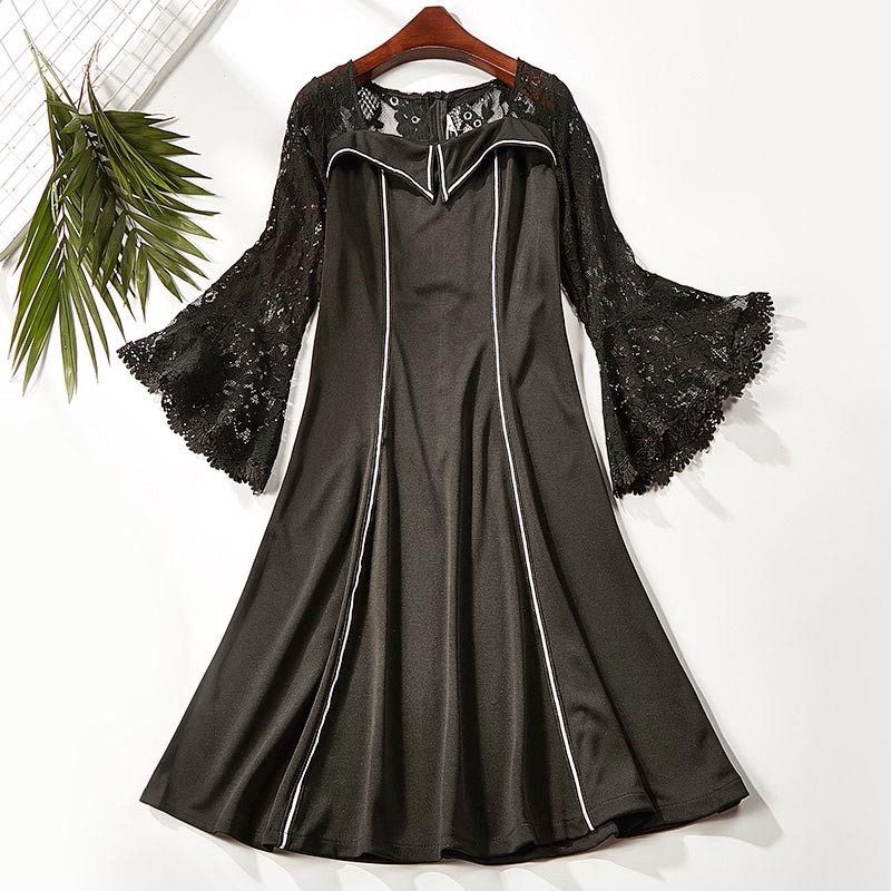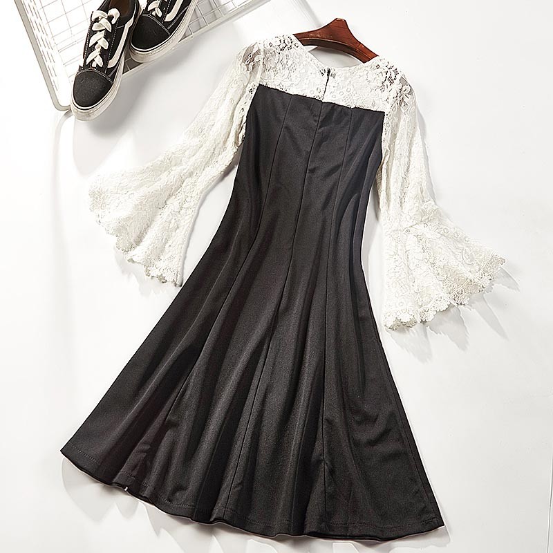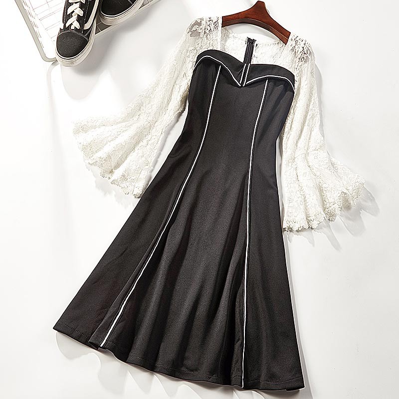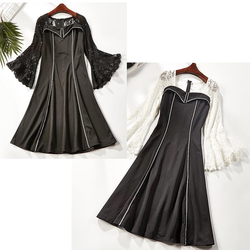 ショルダーレース・ベルスリープ・ホワイトラインデザインのワンピース♪