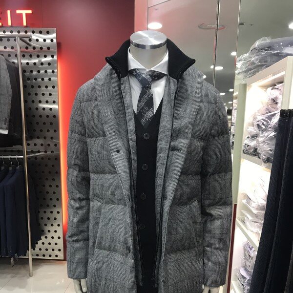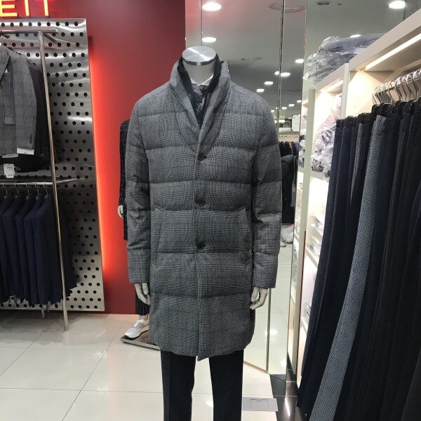 울소재 다운 충전재 코트로 보온성을 더하기위해 앞여임쪽 니트여임이 탈부착디자인으로 되어있습니다.겉 퀼팅선이 없어서 모던한 연출이 가능한 패딩코트입니다.