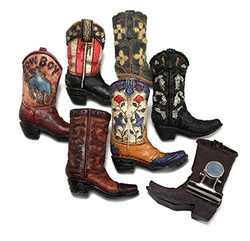 Western Cowboy Boot metal easel comes with 18 clip magnet boots of various designs.