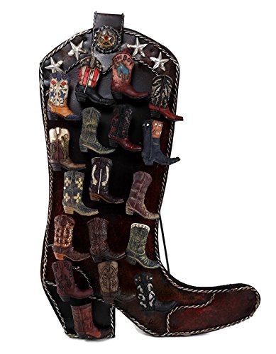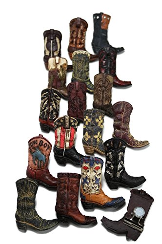 Western Rustic Cowboy Boot Metal Easel Display with 18 Resin 3D Boot Clip Magnets