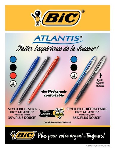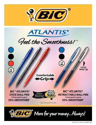-. Title : BIC, Atlantis Retract Ball Pen, Medium Point, 0.7mm, Blue, 2ct